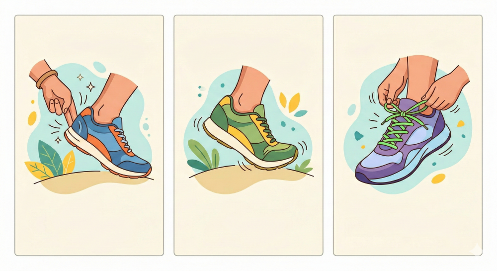 3. 「紐」や「ベルト」で甲を締められること 脱ぎ履きが楽な靴ほど、中で足が泳いで疲れやすくなります。甲をしっかり固定すると、靴が体の一部になり、驚くほど足が軽く感じられます。Gemini_Generated_Image_zdi3dqzdi3dqzdi3